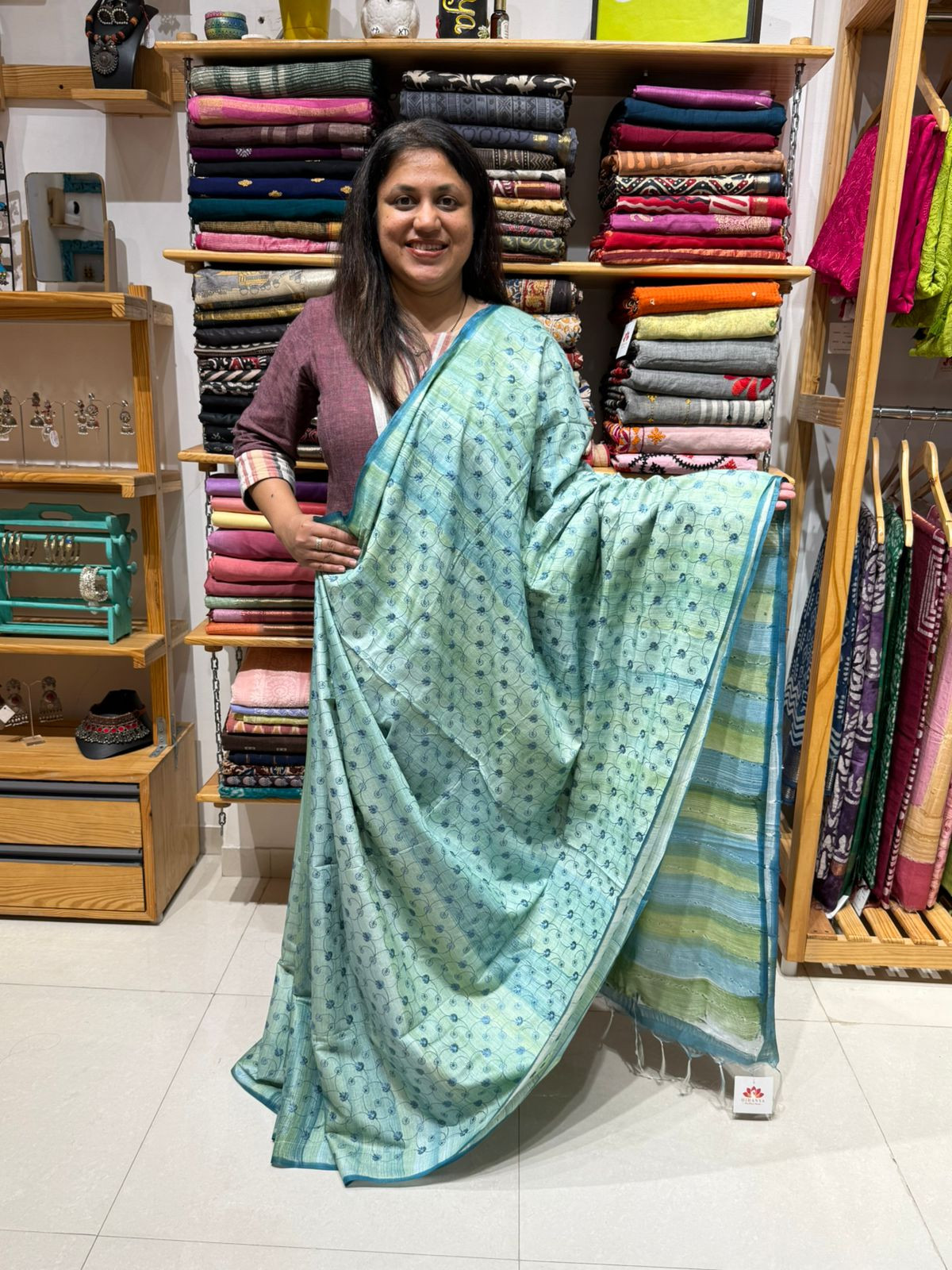 Modal Screen Print Saree - Ajrakh Pallu - Black