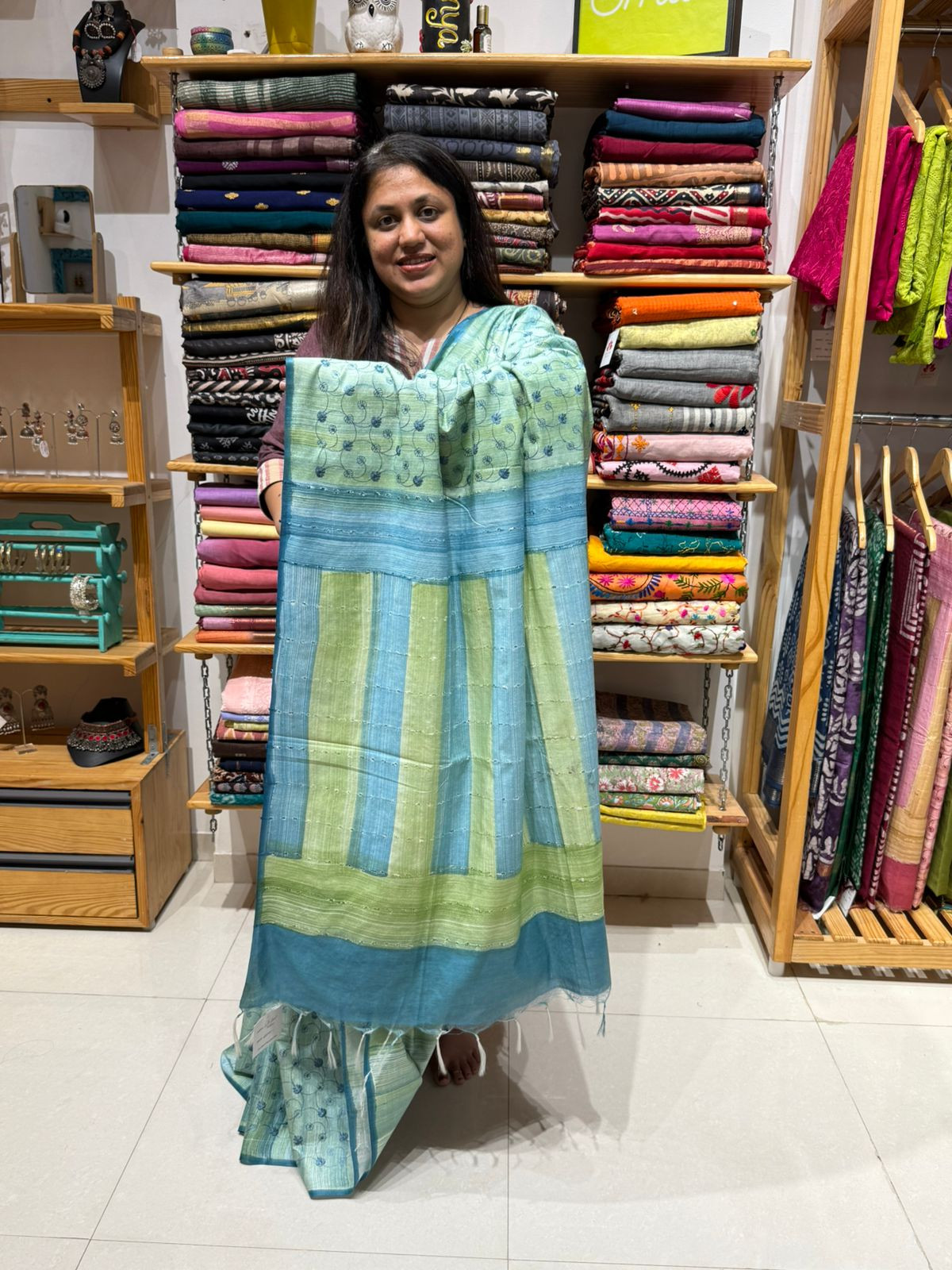 Chennuri Silk Kalamkari Saree | Pink Green Beige
