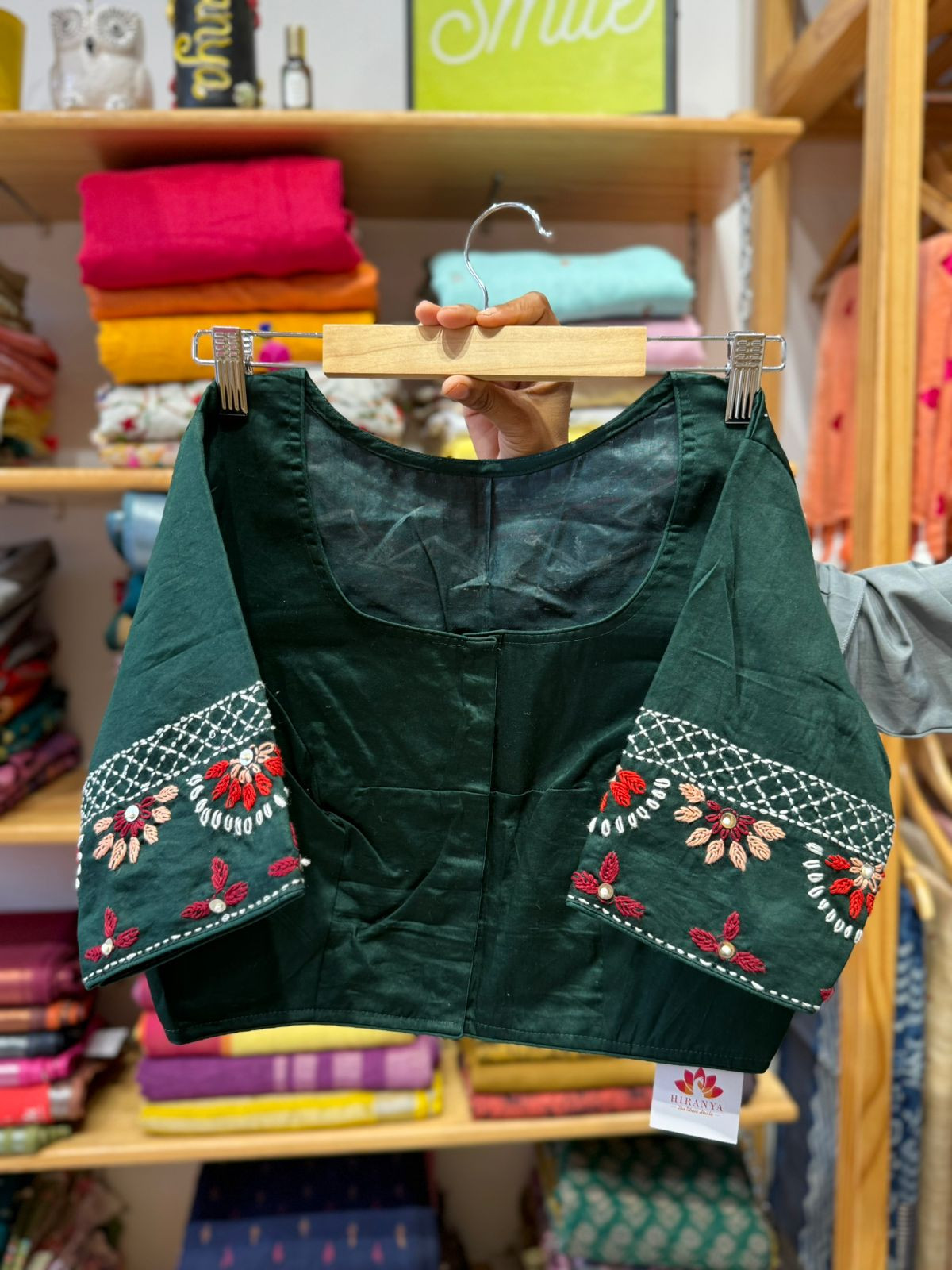 Hand Embroidered Blouse - Green-Free Size