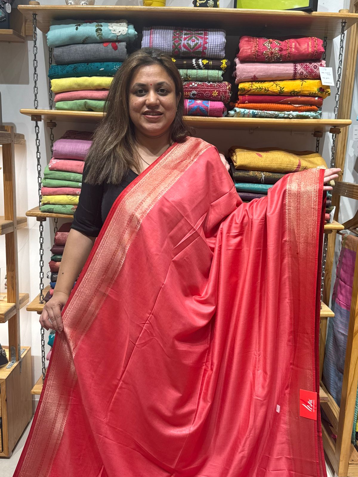 Modal Screen Print Saree - Ajrakh Pallu - Red