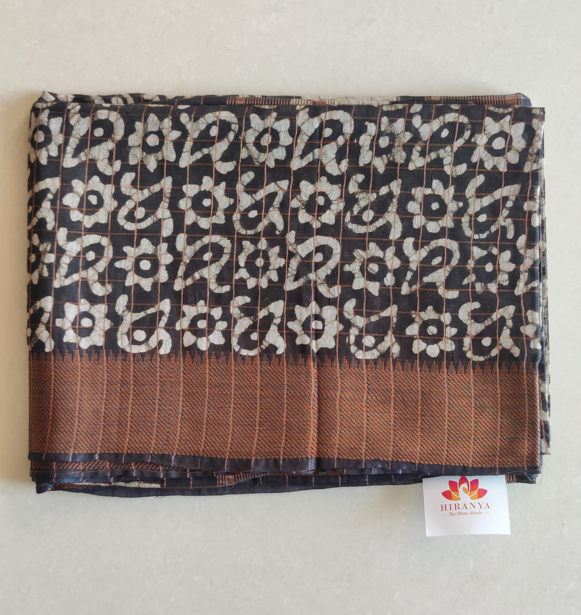 Mercerdized Handloom Cotton Saree with Jamdani Weaving -GreenBlack