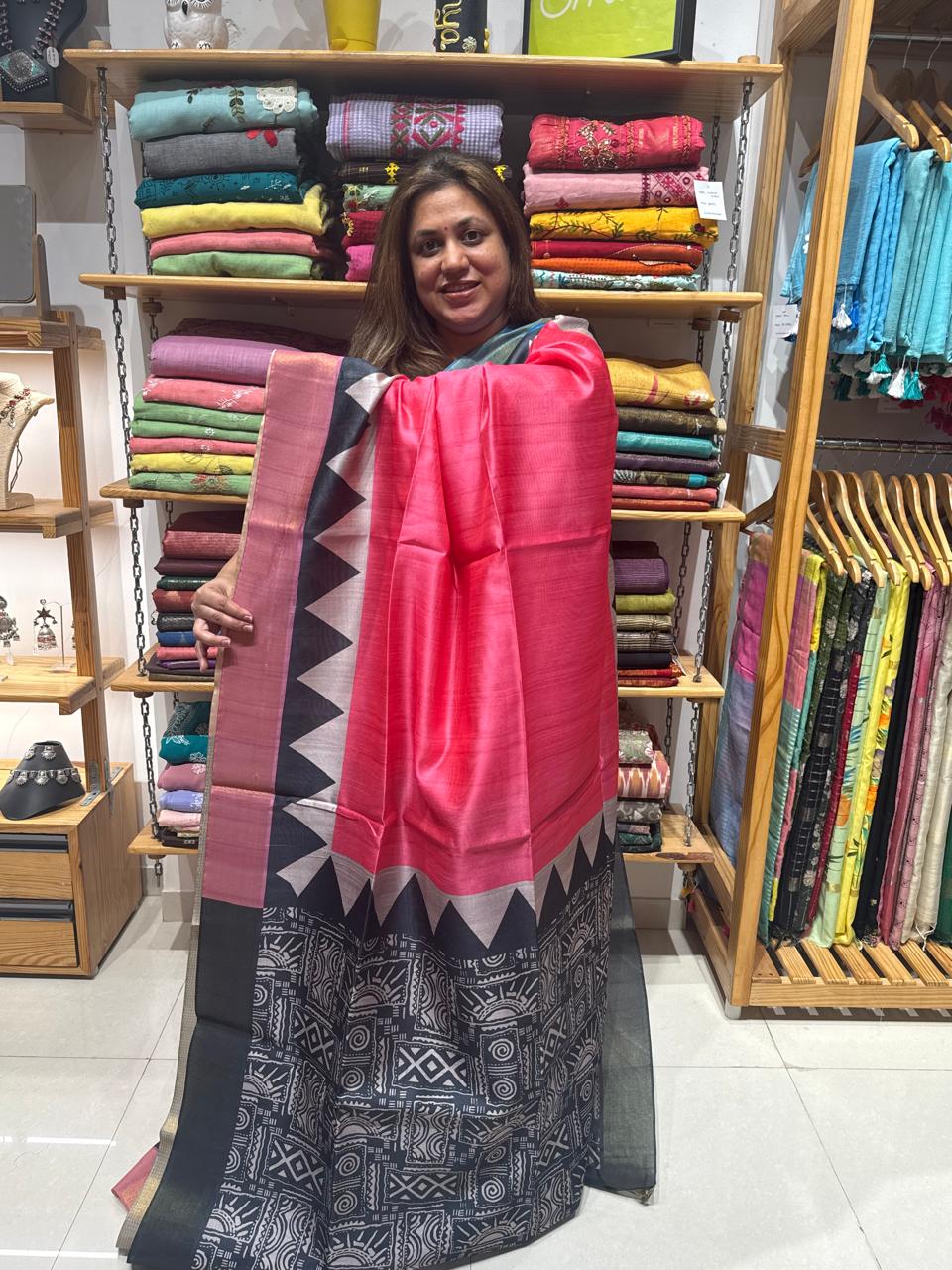 Handwoven Saree with Sambhalpuri Border | Pink