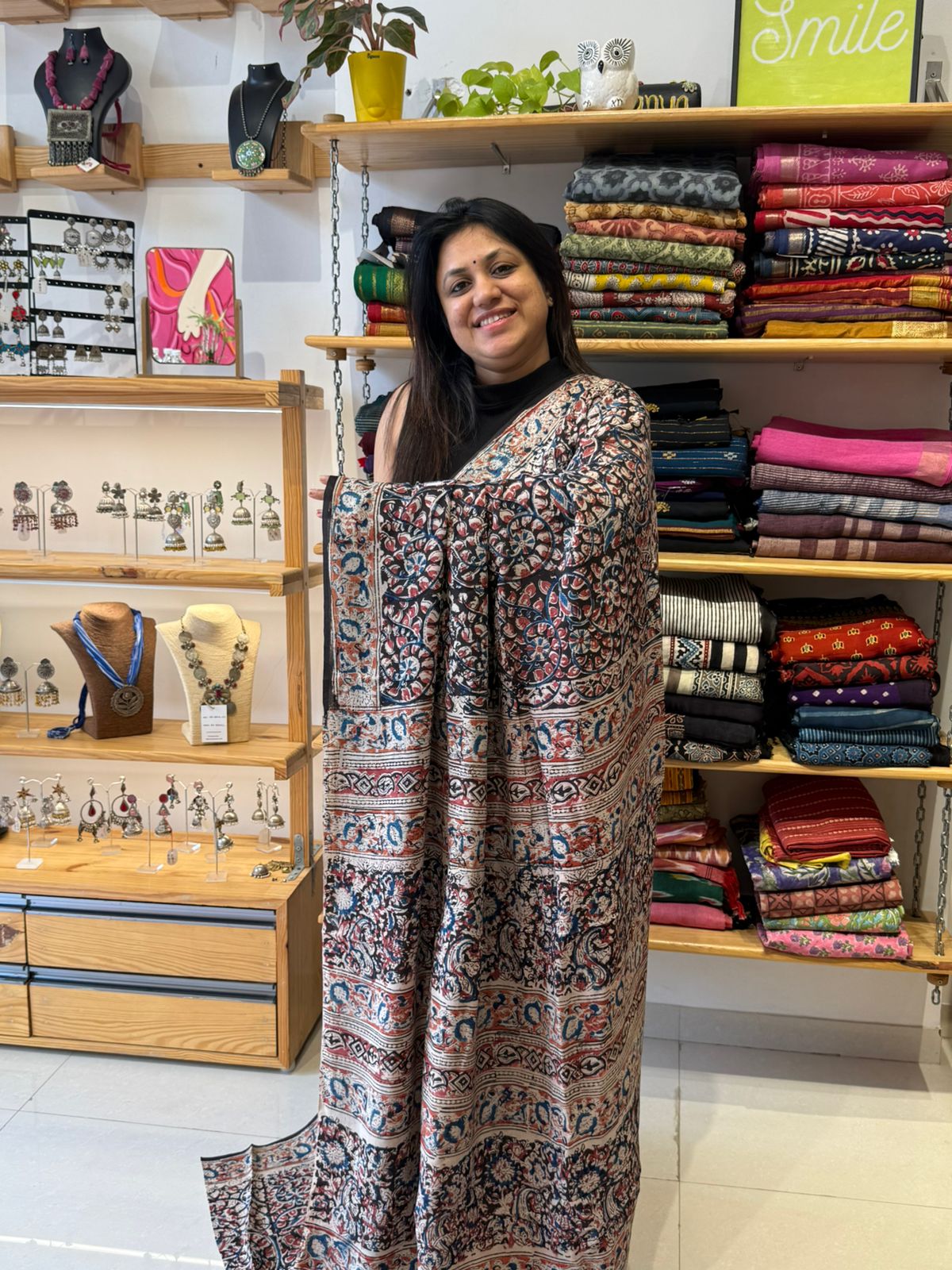 Chennuri Silk Kalamkari Saree | Pink Green Beige