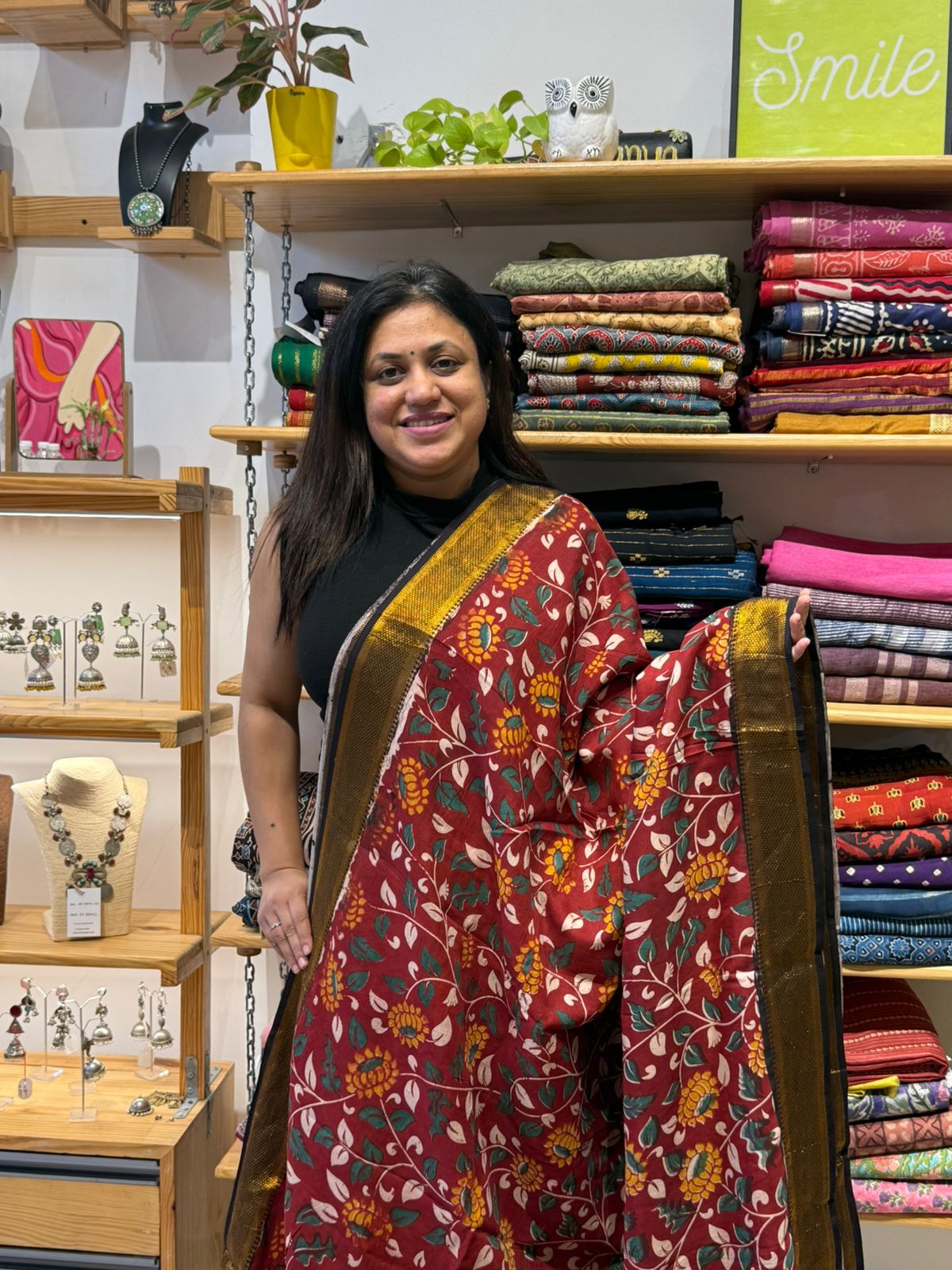 Chennuri Silk Kalamkari Saree | Pink Green Beige