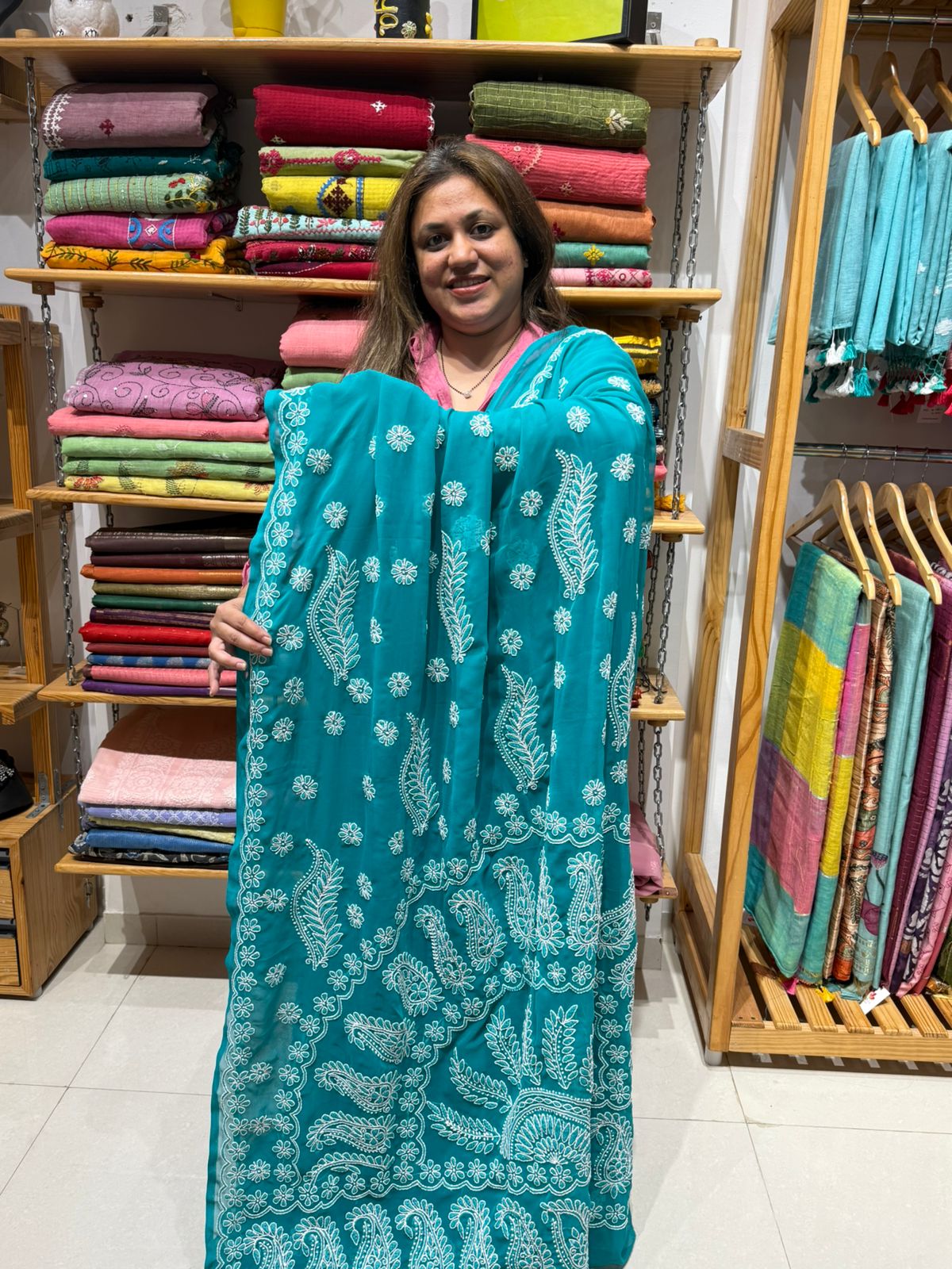Mercerized Cotton Needle Jamdani Weaving Saree -RED