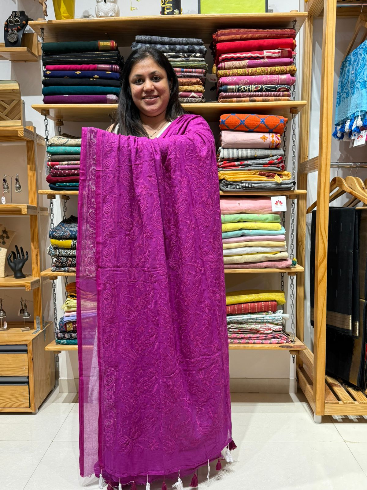 Mercerized Cotton Needle Jamdani Weaving Saree -RED