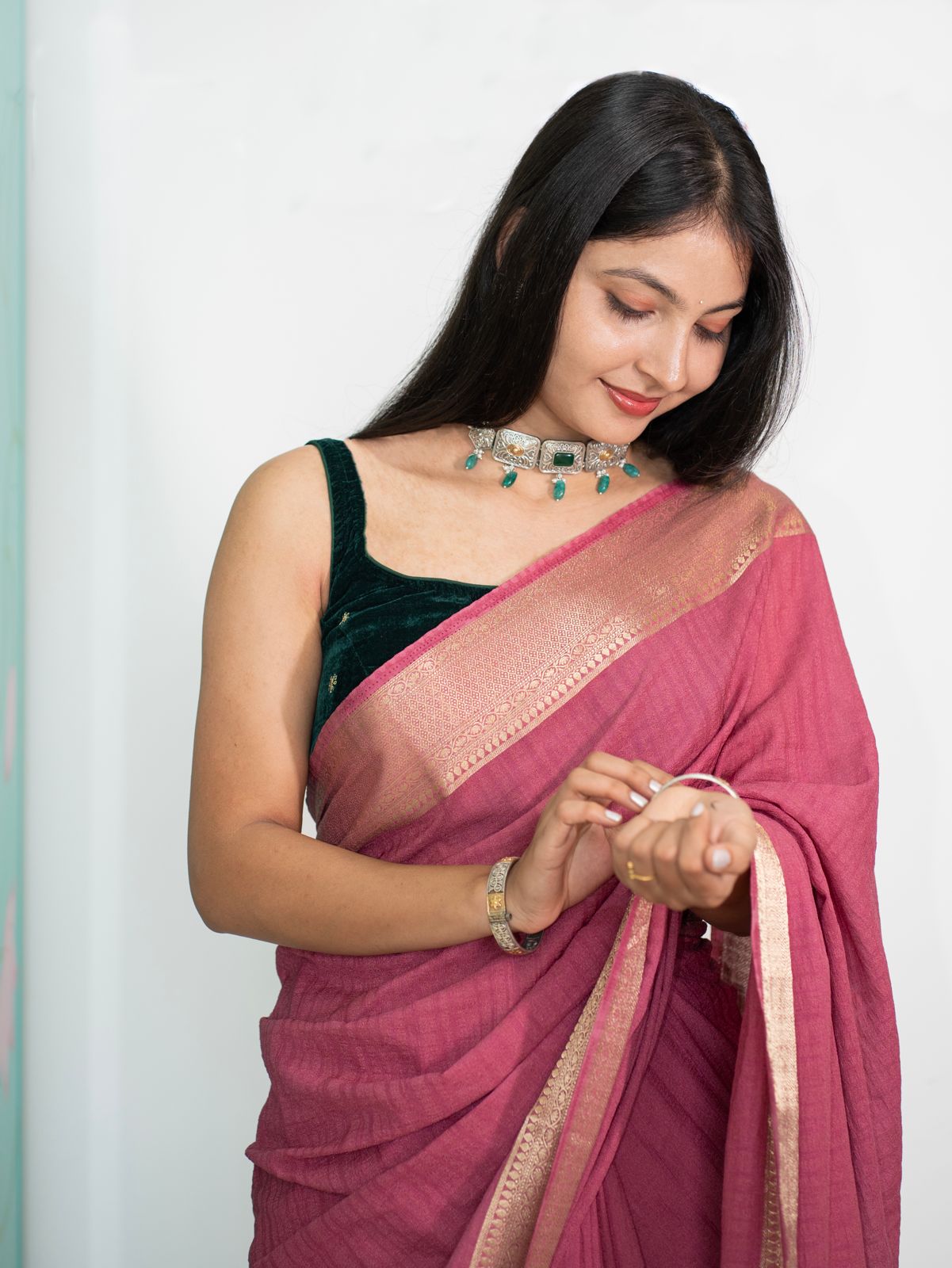 Chennuri Silk Kalamkari Saree | Pink Green Beige