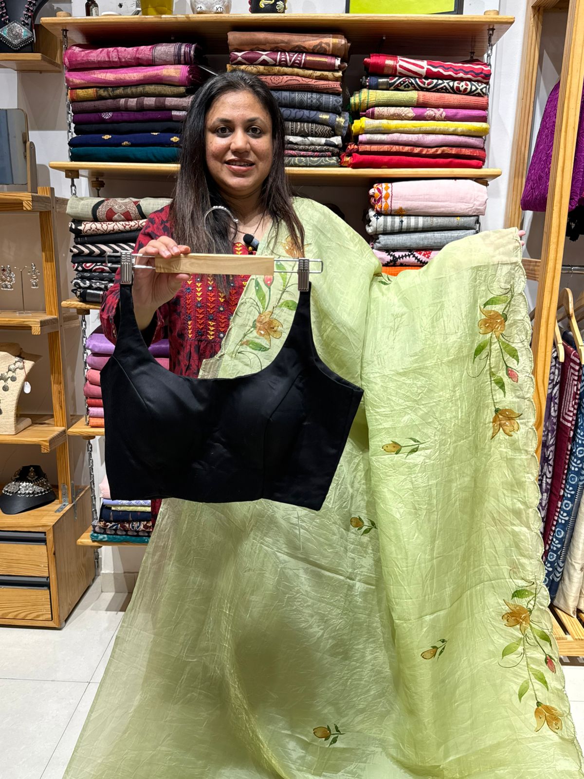 Modal Screen Print Saree - Ajrakh Pallu - Black