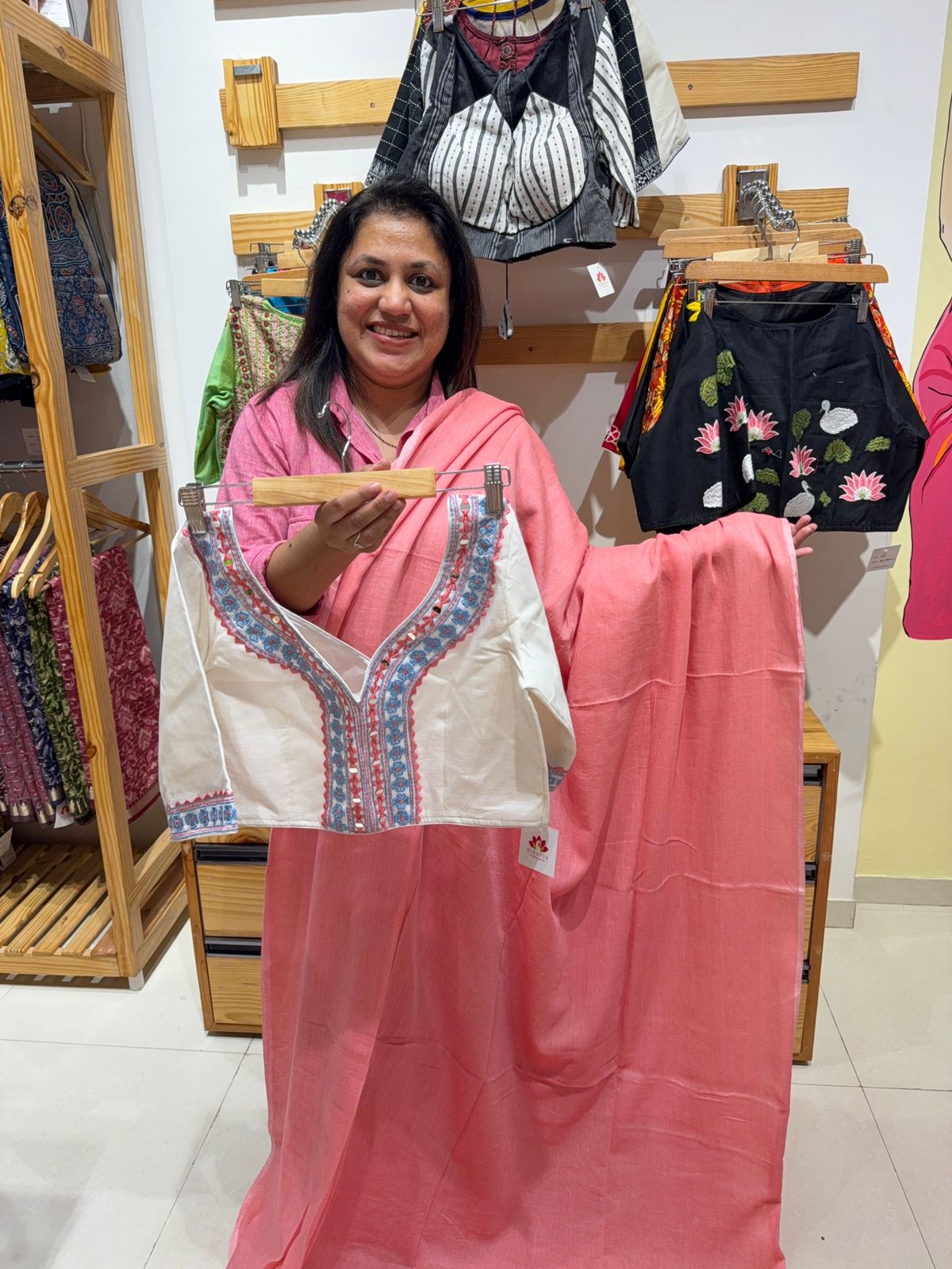 Chennuri Silk Kalamkari Saree | Pink Green Beige