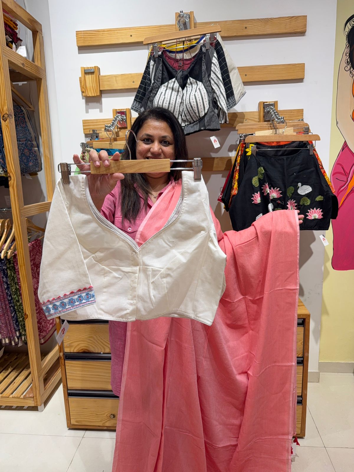 Peach Plain Mul Saree with Mirrorwork Blouse