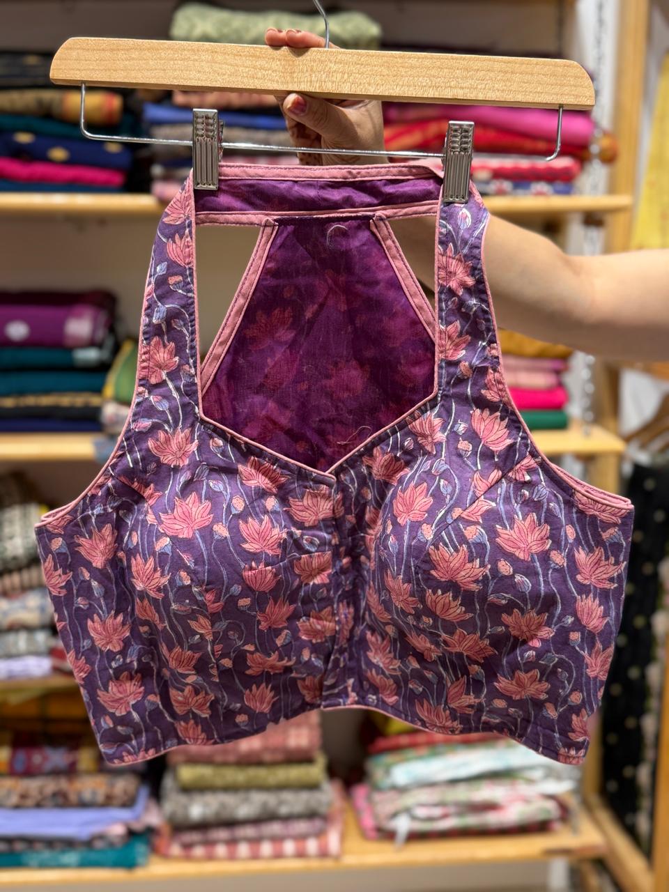 Halter Neck Padded Lotus Print Pink Blouse - Sizes 36,38