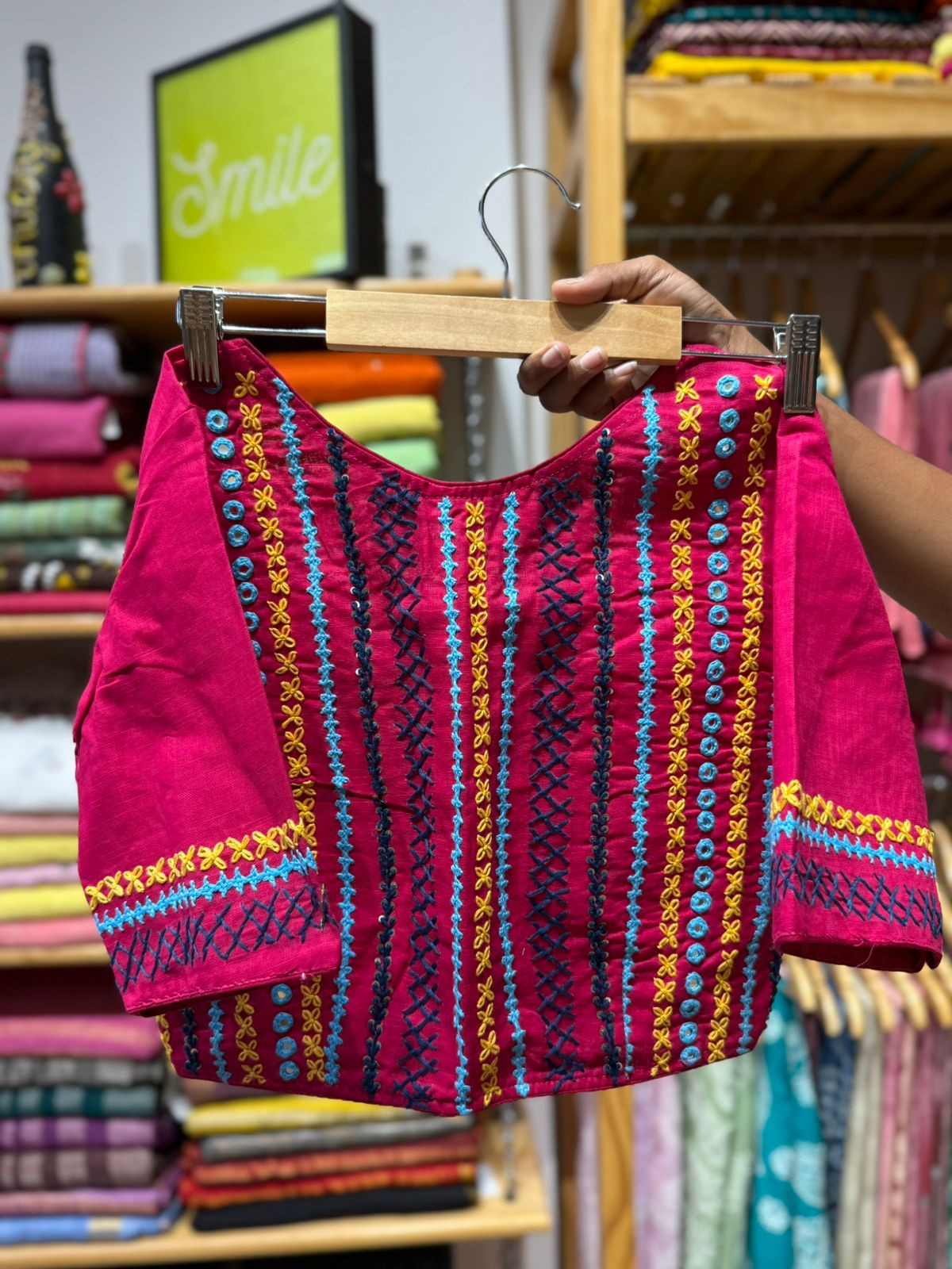 Handwork Mirror work Non Padded Blouse - Free Size 36 to 42 - Pink