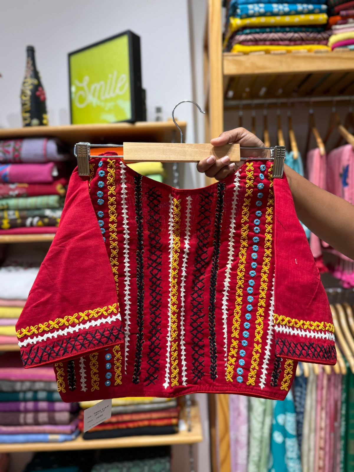 Handwork Mirror work Non Padded Blouse - Free Size 36 to 42 - RED