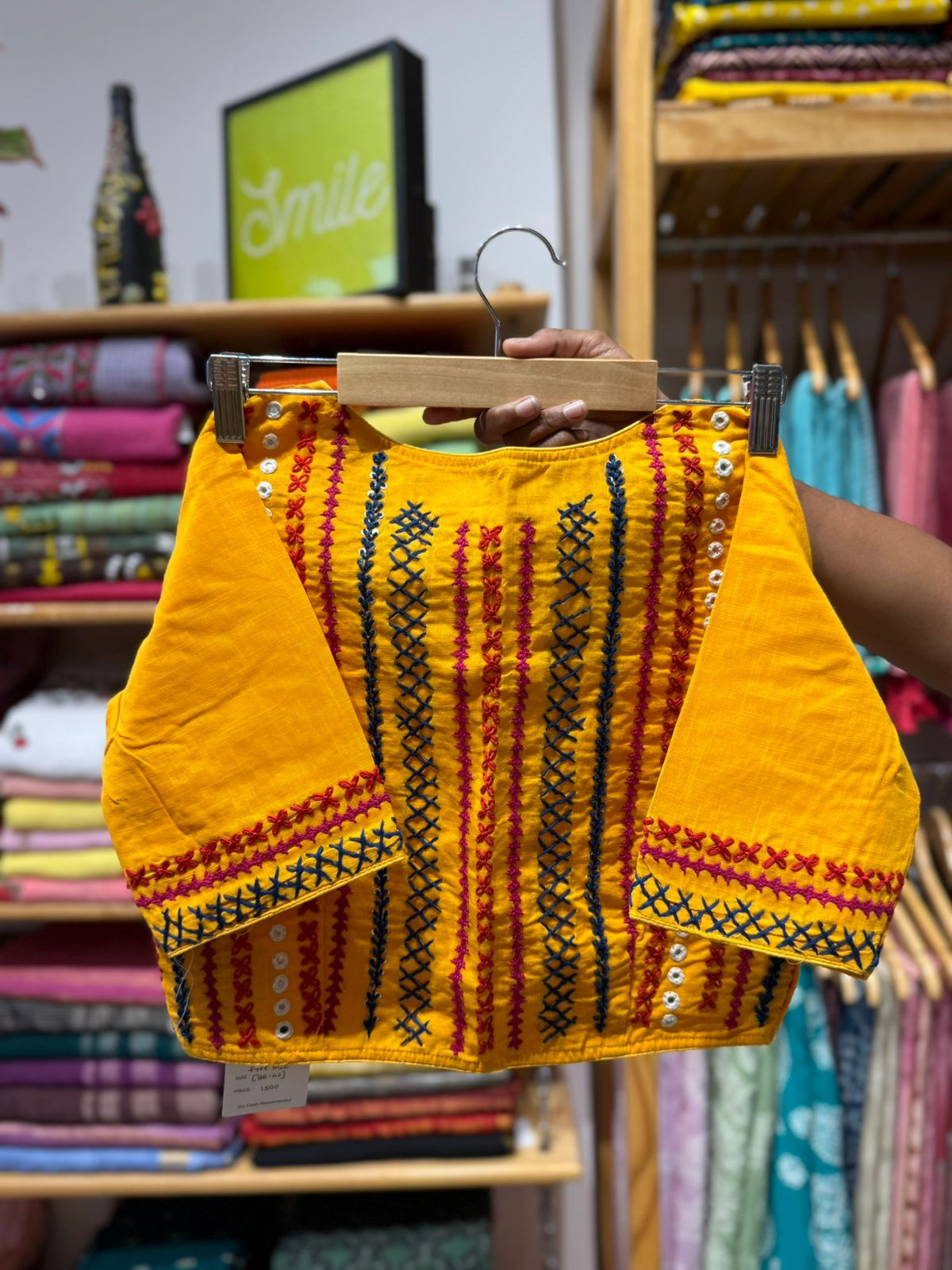 Handwork Mirror work Non Padded Blouse - Free Size 36 to 42 - YELLOW
