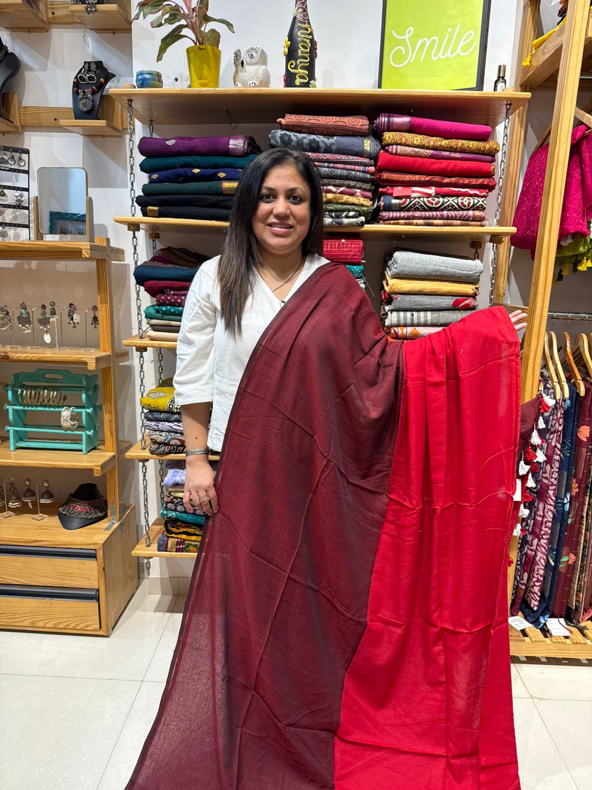 Mercerized Cotton Needle Jamdani Weaving Saree -RED