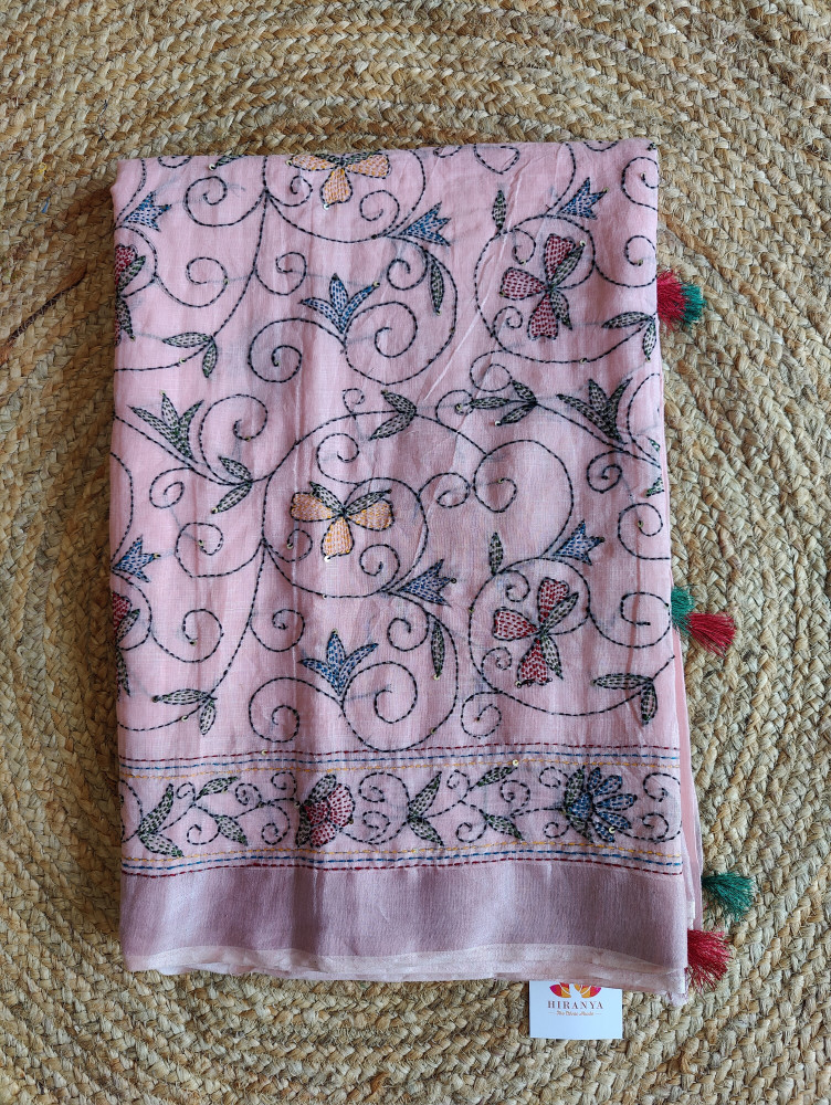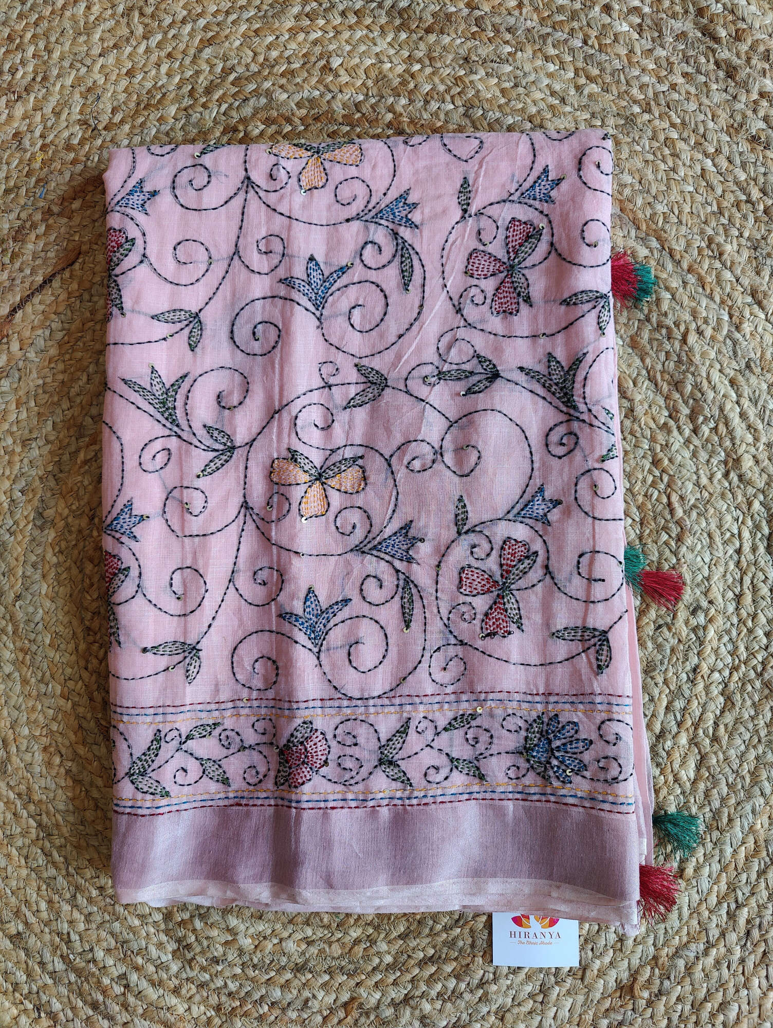 Chennuri Silk Kalamkari Saree | Pink Green Beige
