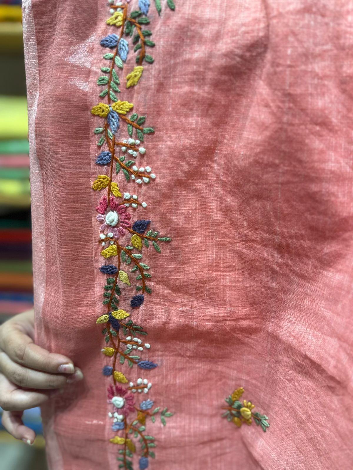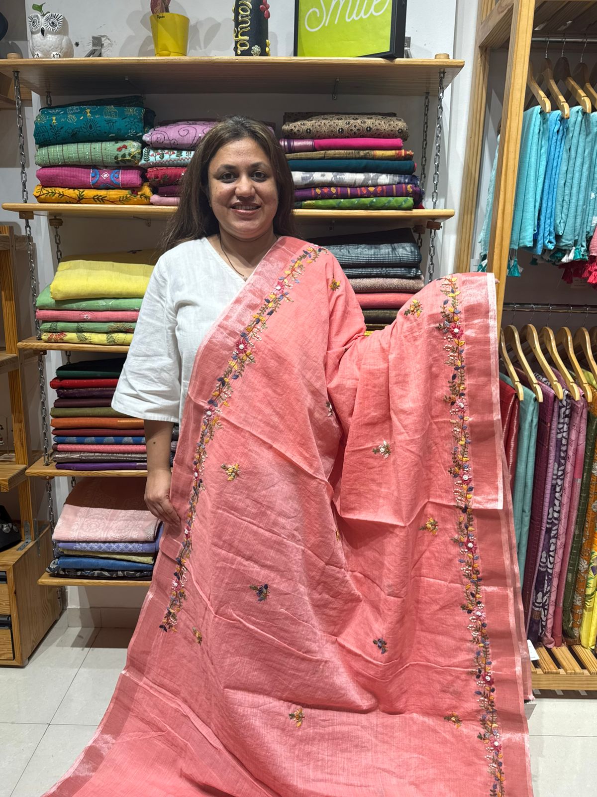 Mercerized Cotton Needle Jamdani Weaving Saree -RED