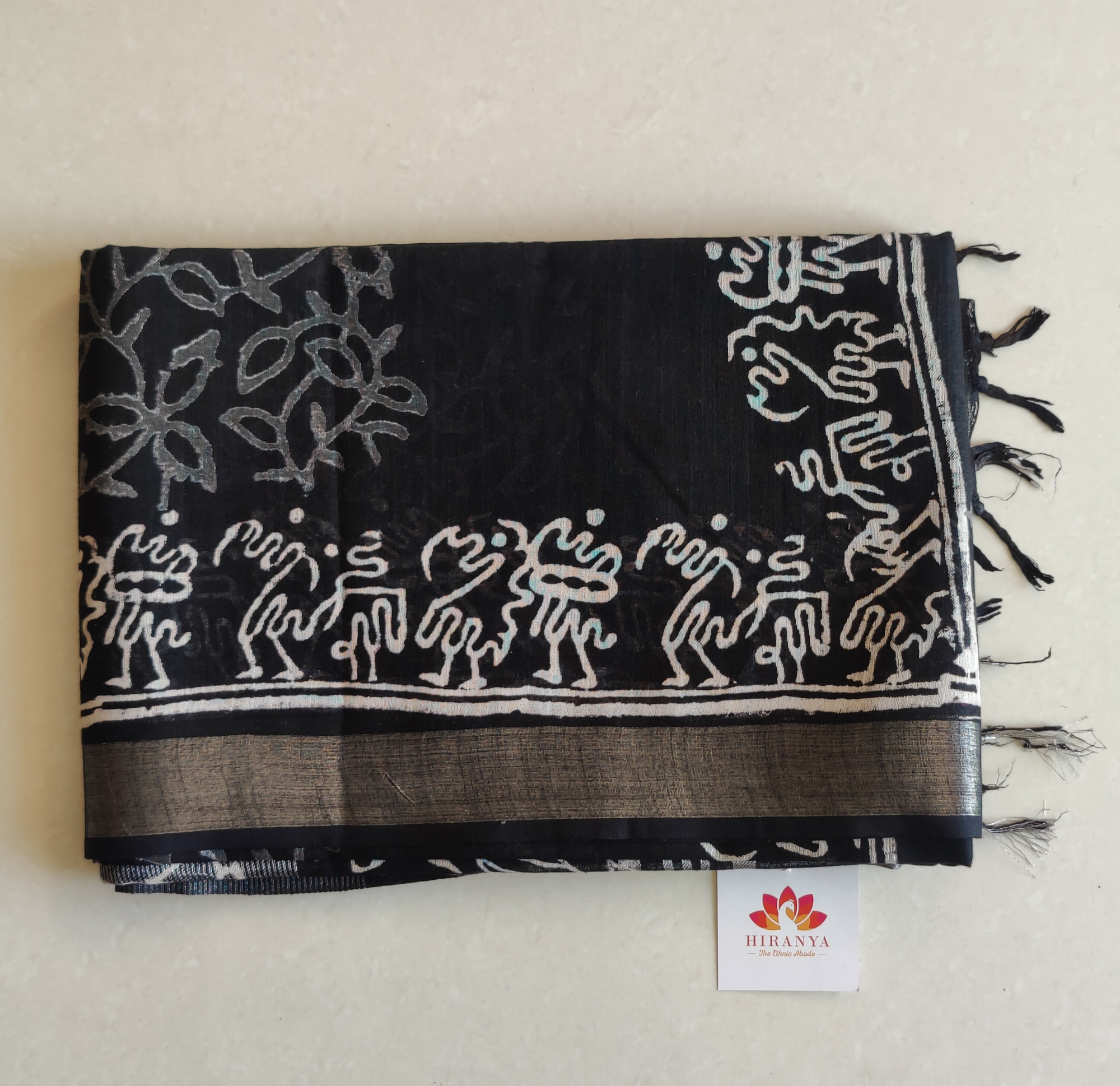 Linen Cotton Saree - Black