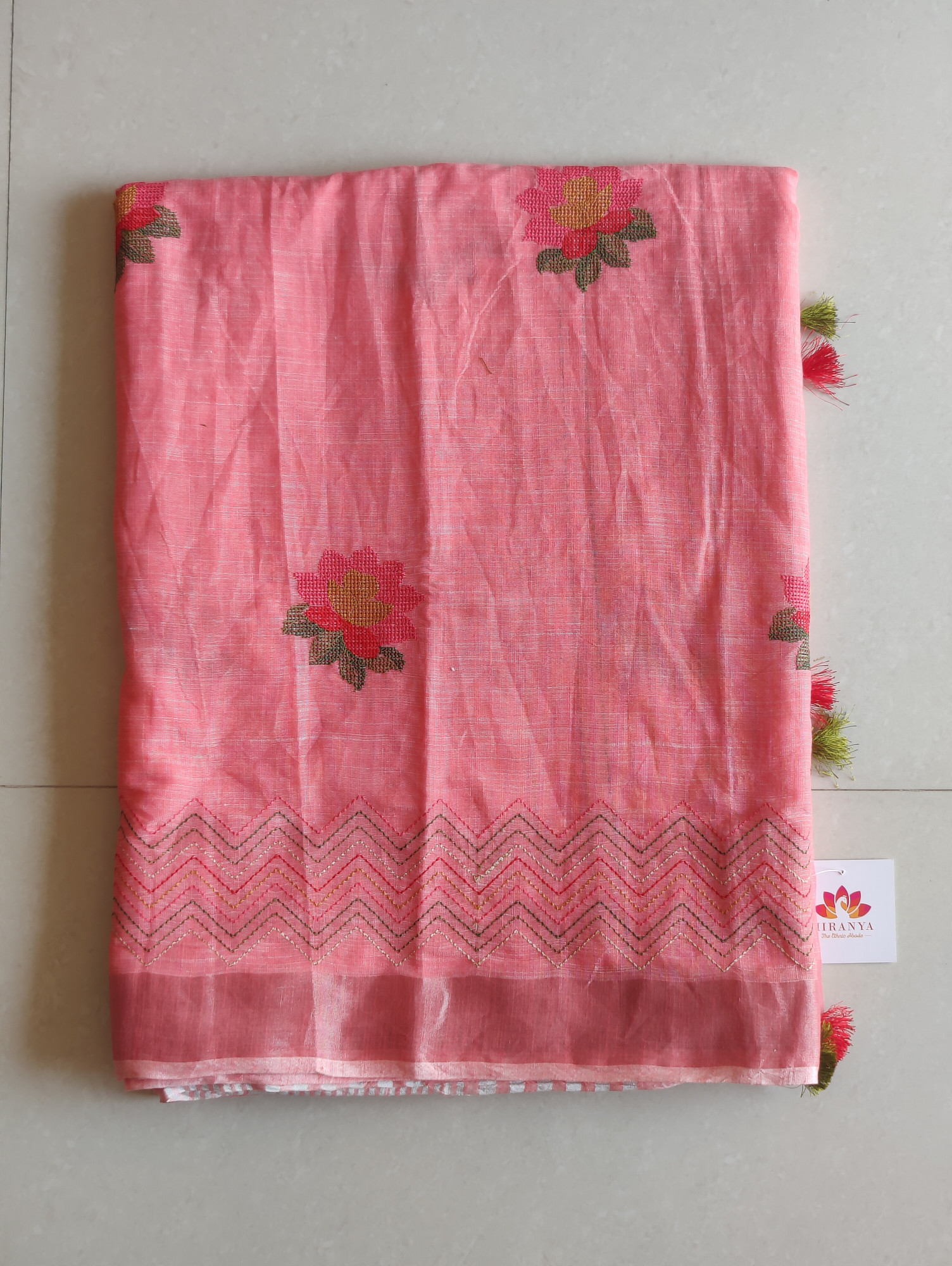 Chennuri Silk Kalamkari Saree | Pink Green Beige