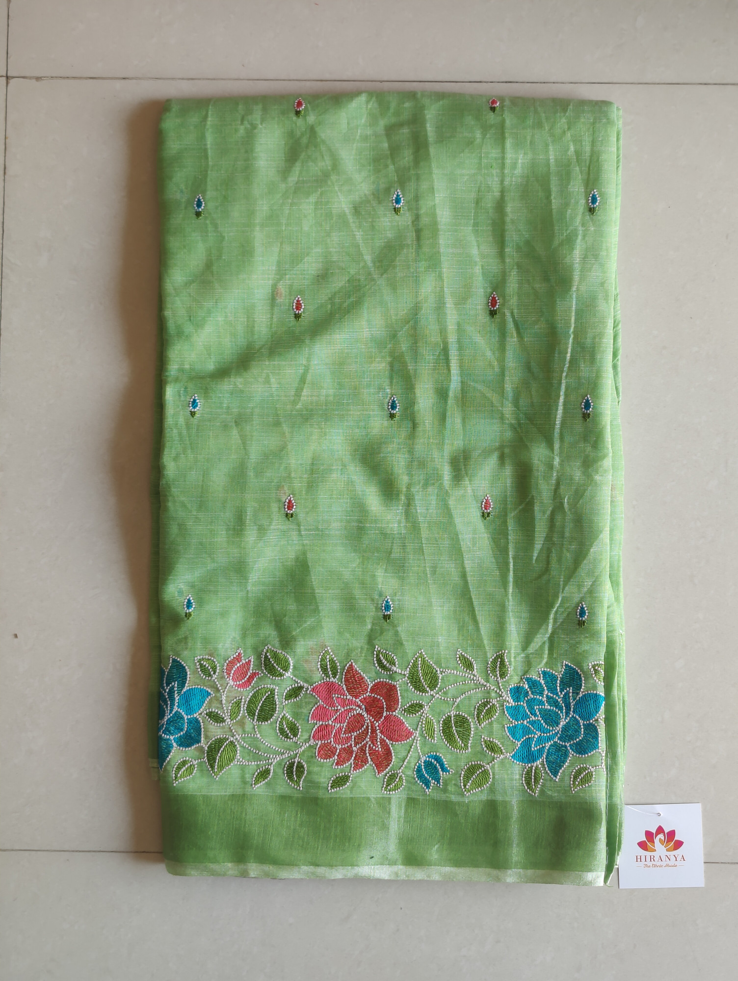 Mul Chanderi Saree with Handwork | Kesari