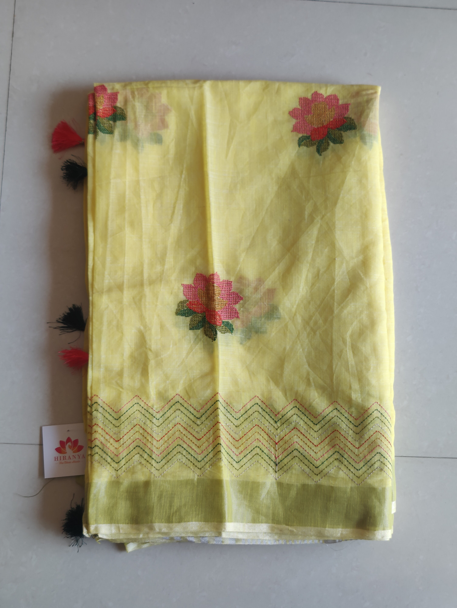 Mercerdized Handloom Cotton Saree with Jamdani Weaving -GreenBlack