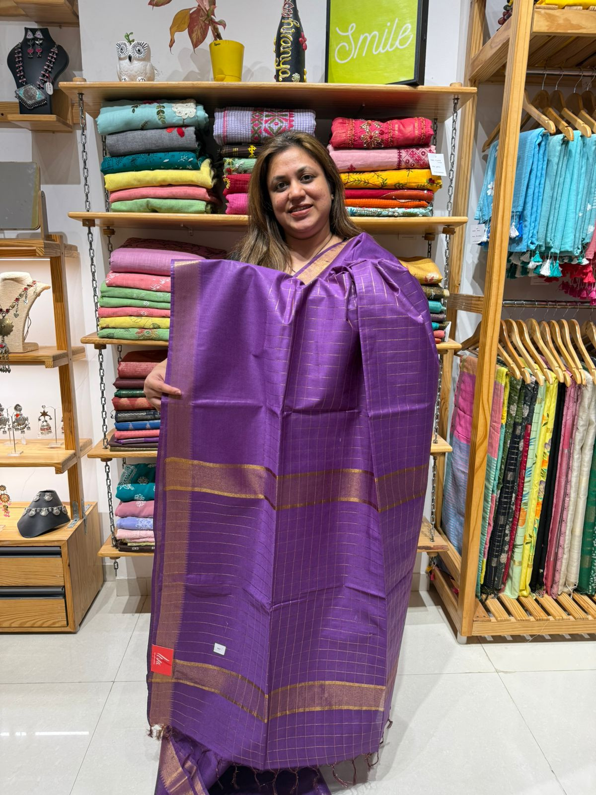 Mangalgiri checks blended cotton saree