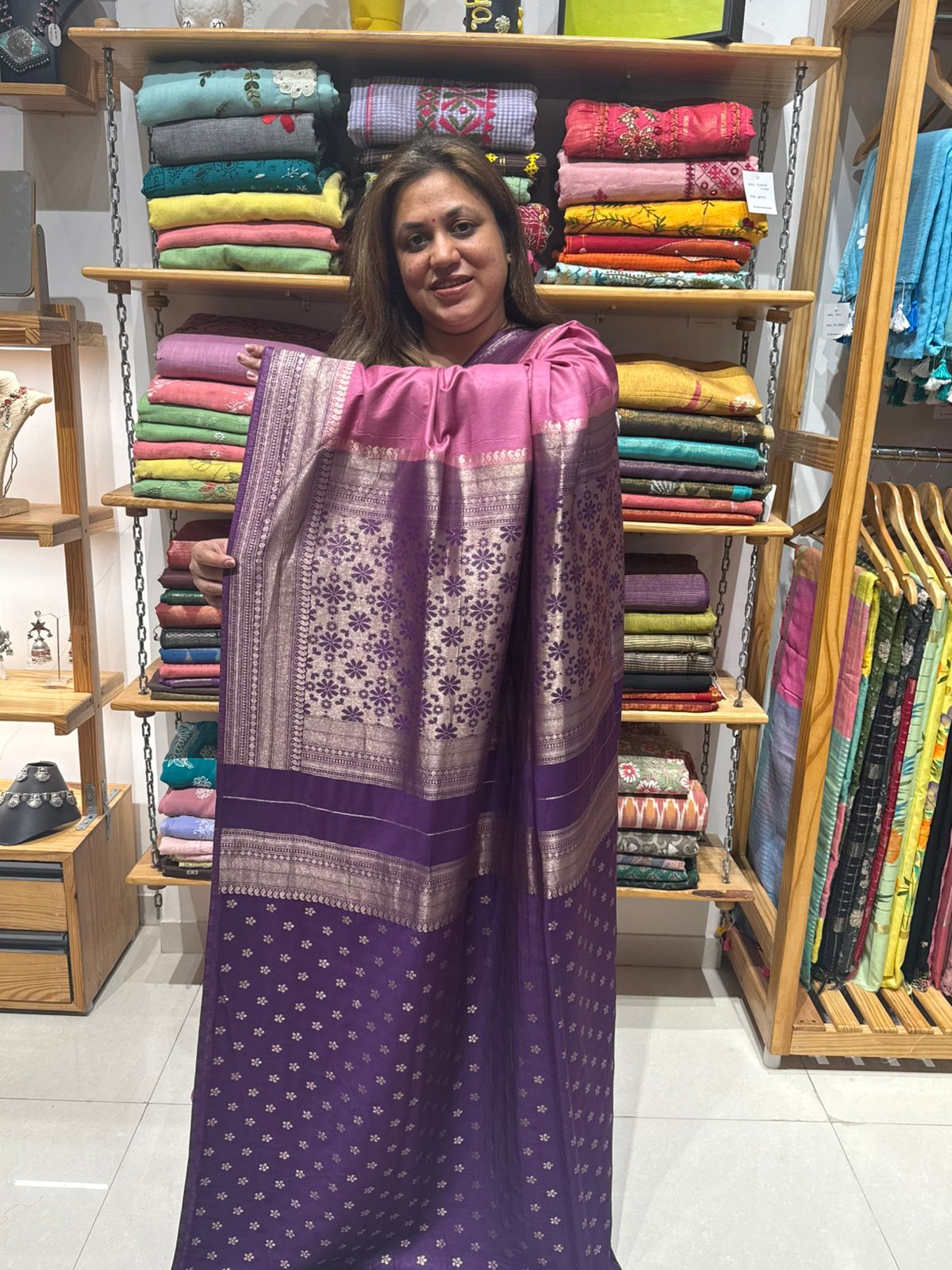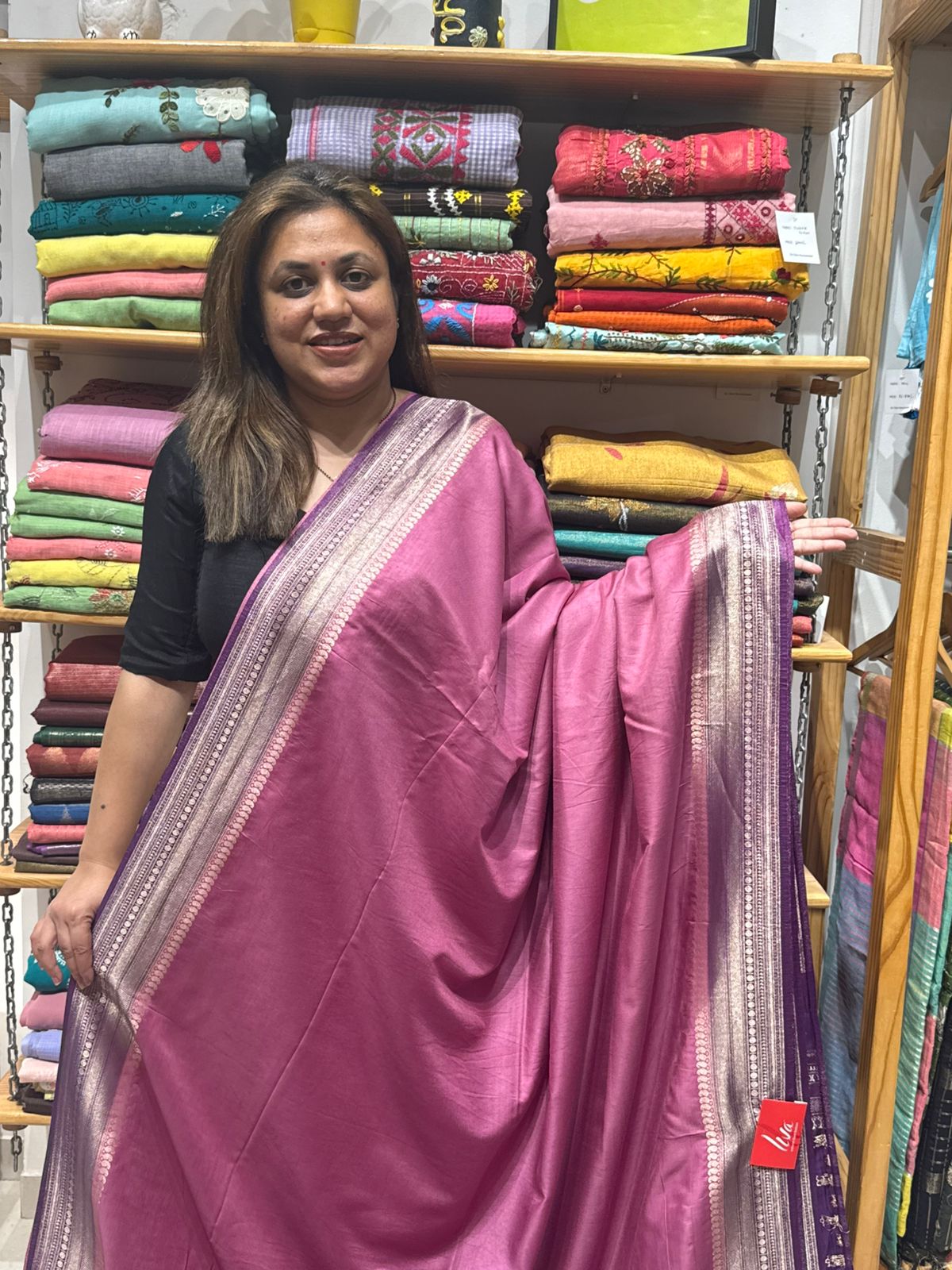 Chennuri Silk Kalamkari Saree | Pink Green Beige