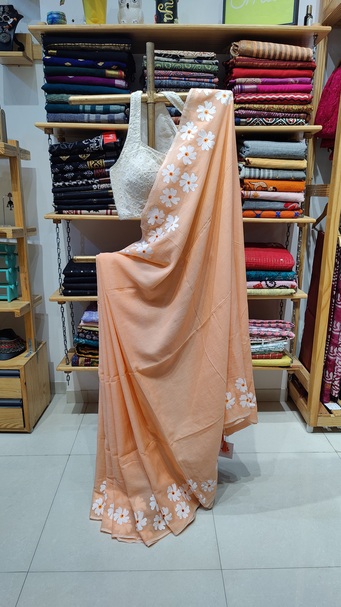 Modal Screen Print Saree - Ajrakh Pallu - Red