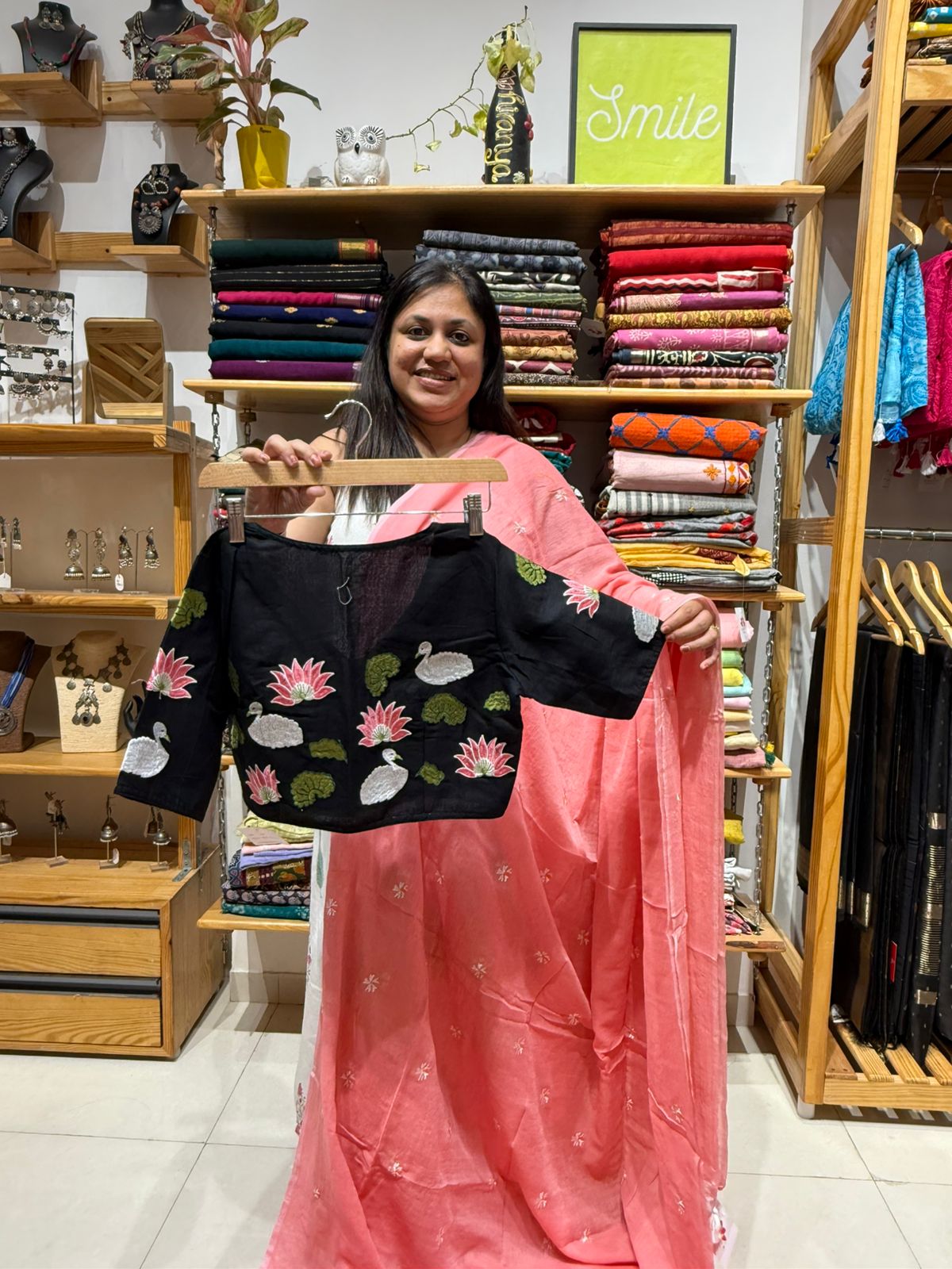 Parijat Mul Saree and Black embroidered Blouse