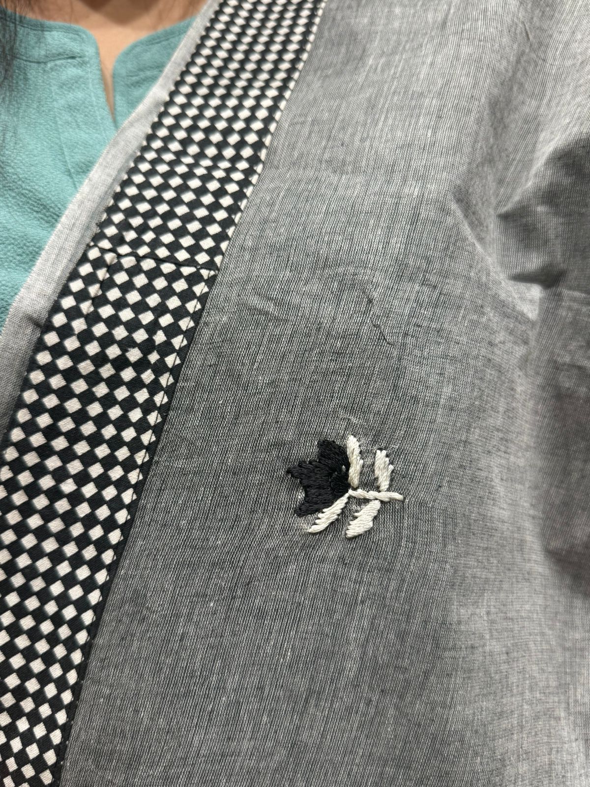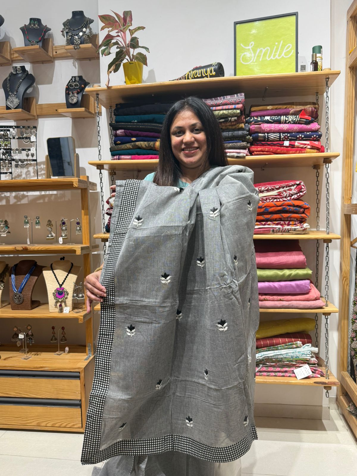 Mercerdized Handloom Cotton Saree with Jamdani Weaving -GreenBlack