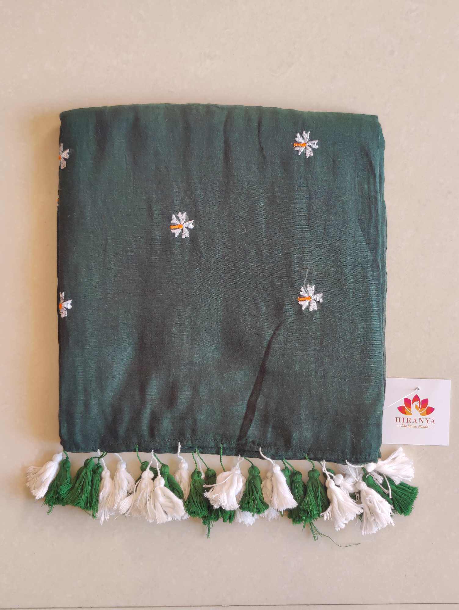 Prajakta Embroidered Mul Saree - Bottle Green