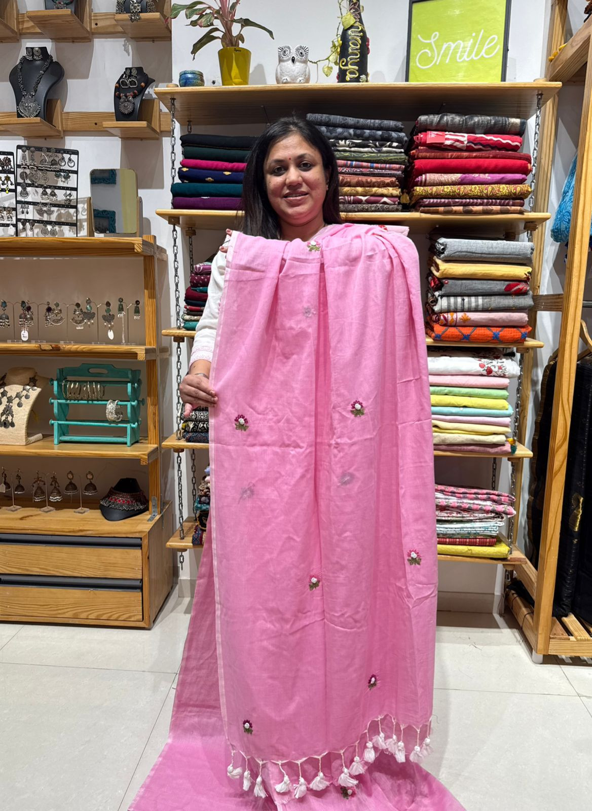 Mul Chanderi Saree with Handwork | Kesari