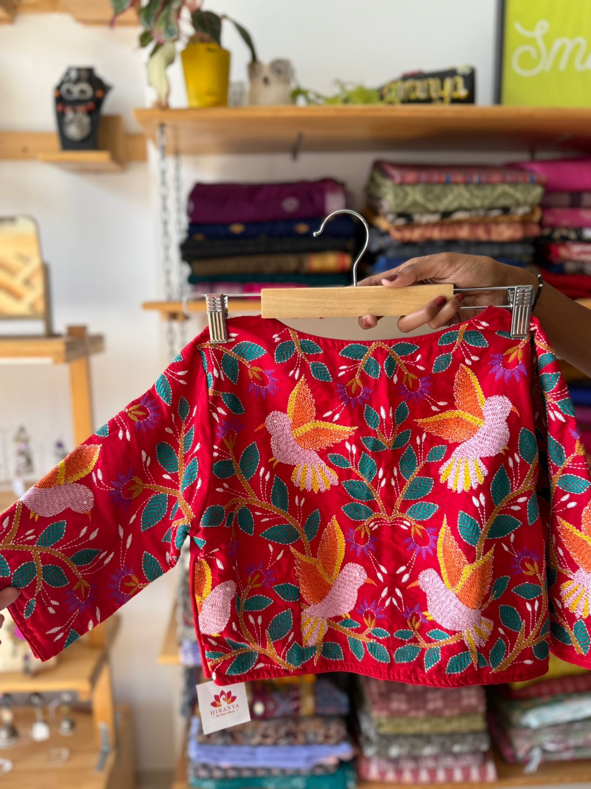 Red Kantha Stitch Cotton silk Blouse