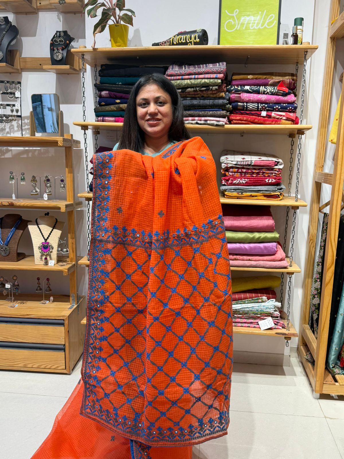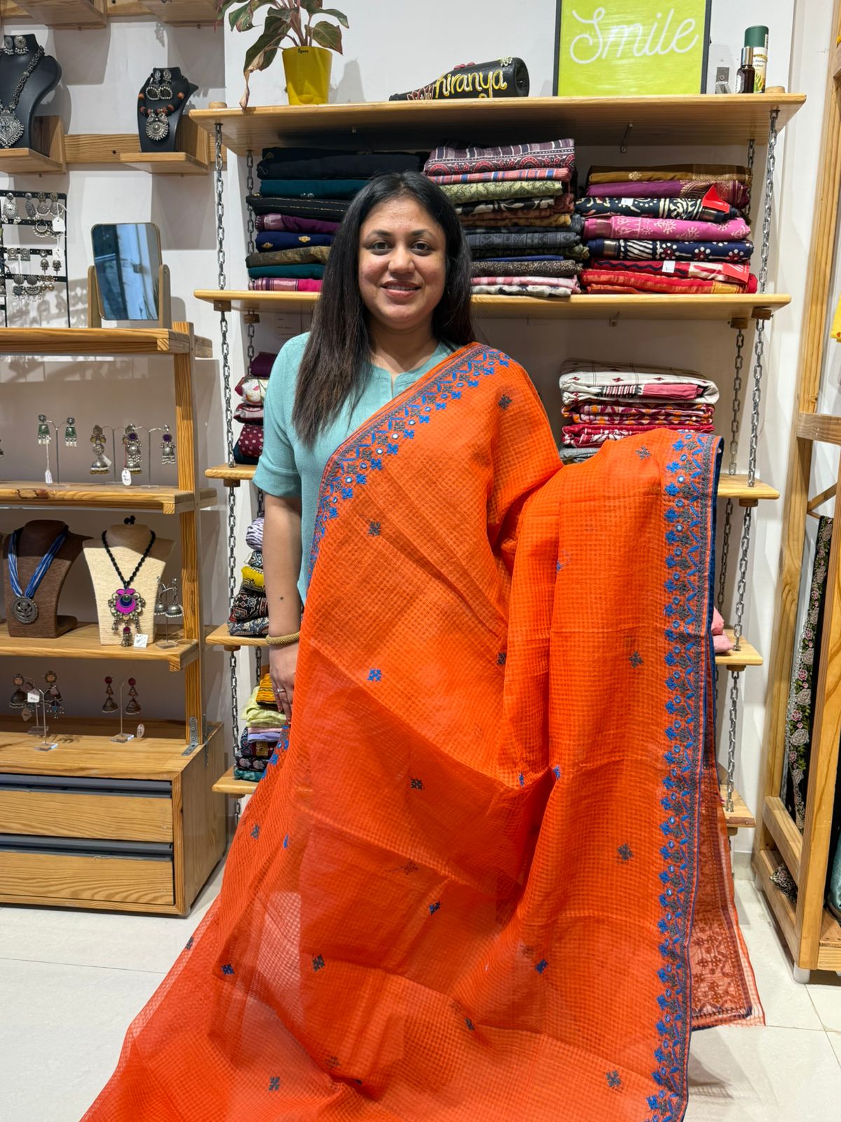 Resham Kota Saree with GUJRATI Handwork - Orange