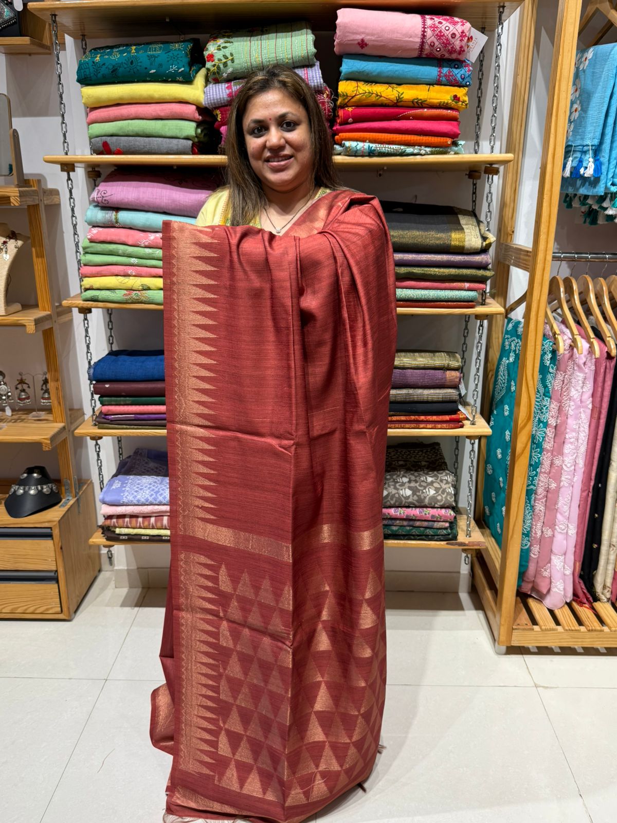Modal Screen Print Saree - Ajrakh Pallu - Red