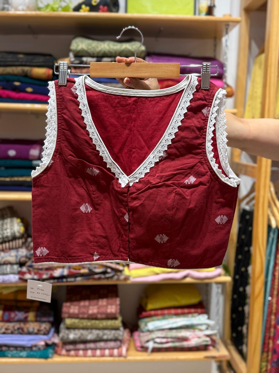 Sleeveless RED Jamdani Blouse - FREE SIZE