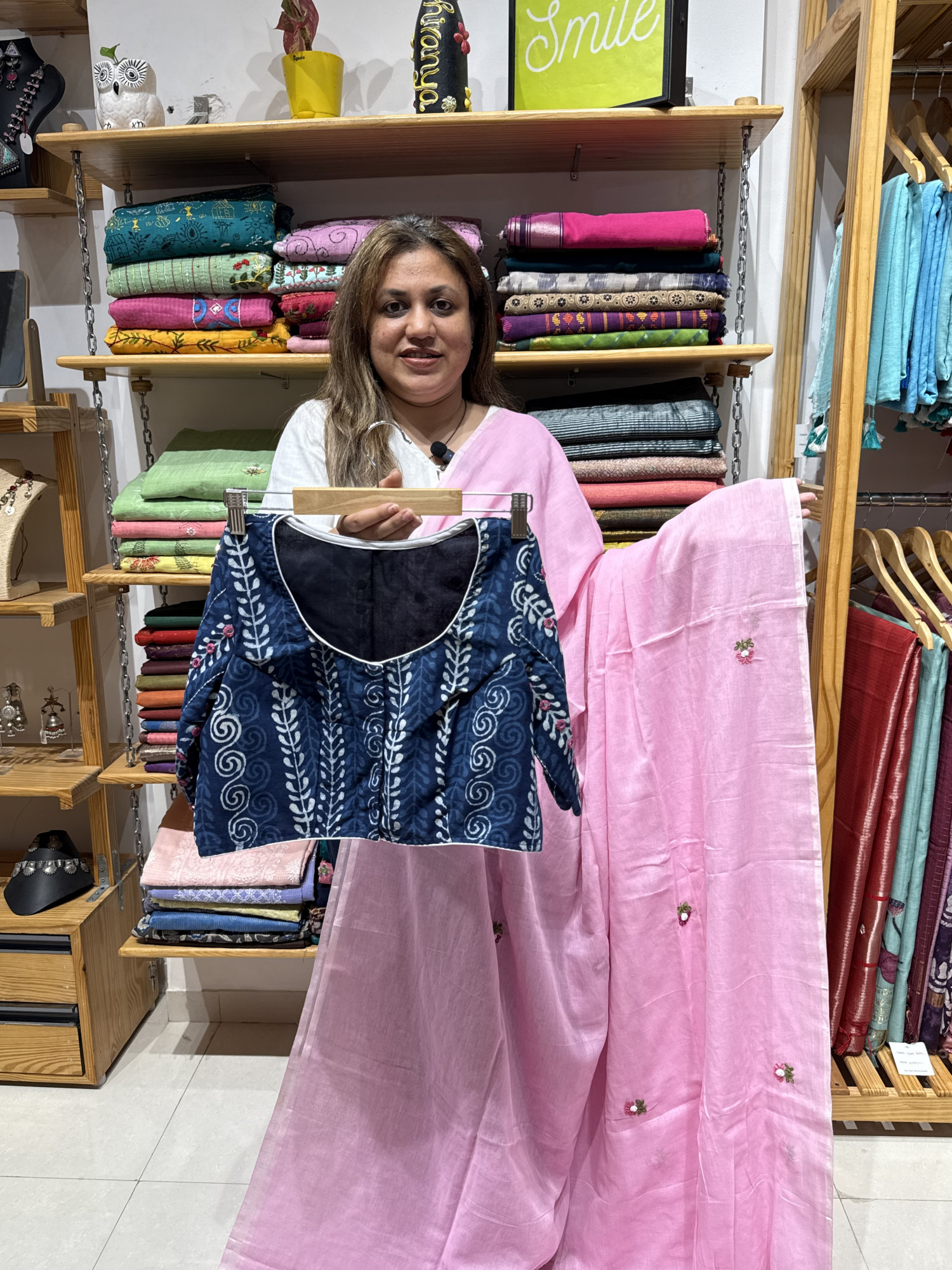 Viral Combo - Pink handwork saree with Indigo handwork blouse -14 Days Making Time
