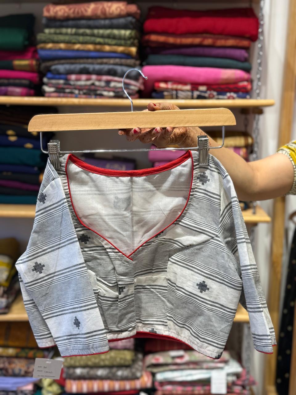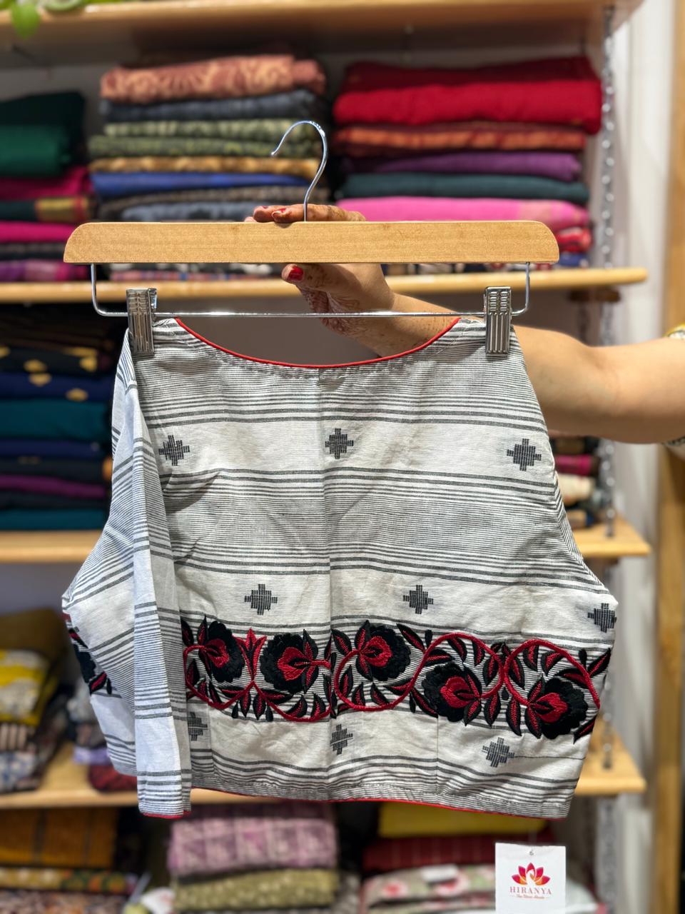 White Handloom Cotton Blouse with Red Emboidery - Size 36 ,38