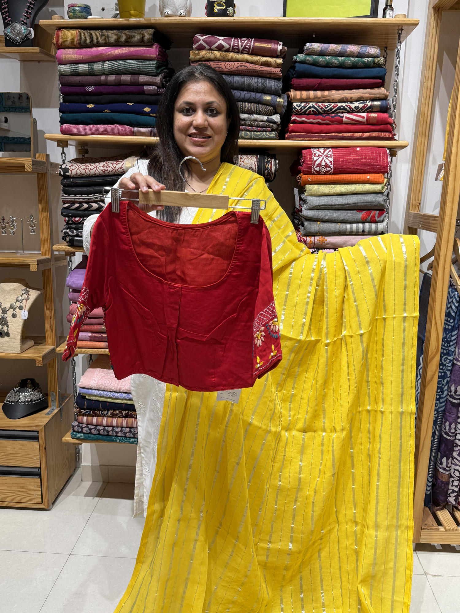 Modal Screen Print Saree - Ajrakh Pallu - Red